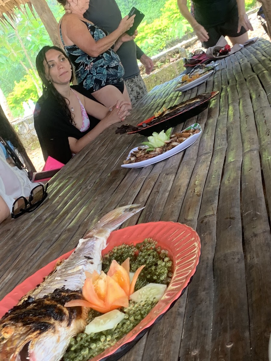 This isn’t the kind of place for a quick coffee run but rather somewhere to settle in, enjoy ocean views, and share a meal that feels effortlessly connected to its surroundings. The menu focuses on straightforward, fresh seafood and grilled meats—dishes like grilled parrot fish paired with seaweed salad or shrimp halabos reflect local tastes and ingredients. Those who come as part of boat tours or island expeditions often take advantage of the seafood offerings to round out their day at the beach.